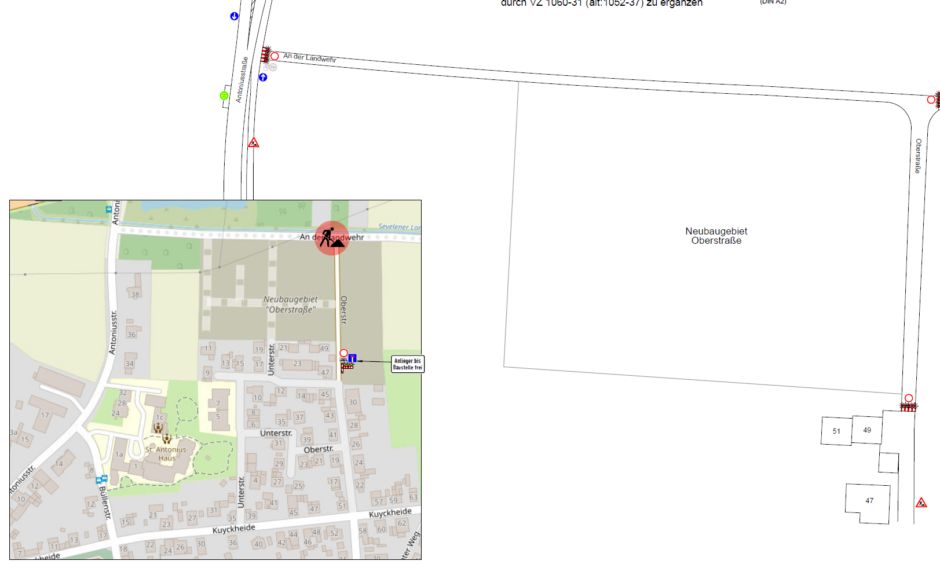 Auf Grund von Arbeiten an der Stromversorgung und der Kanalisation muss in dem Bereich des Neubaugebietes die Oberstraße sowie die Straße „An der Landwehr“ bis zum 10.04.2026 gesperrt werden.